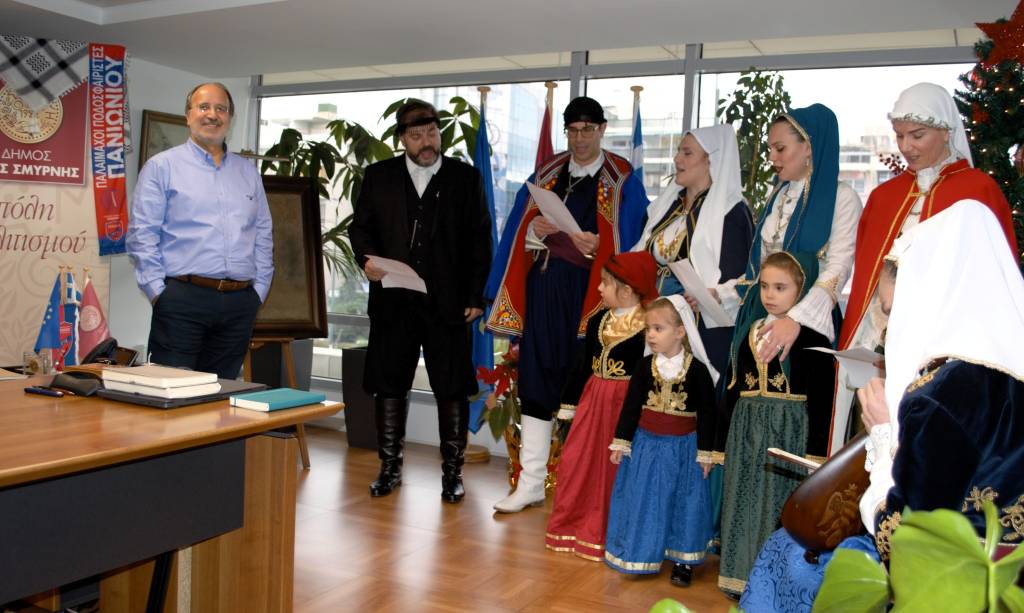 Με τους γνώριμους αυτούς στίχους και μέσα σε κλίμα χαράς και συγκίνησης, η Ένωση Κρητών Νέας Σμύρνης, παραμονή Πρωτοχρονιάς, τίμησε και φέτος τα ήθη και τα έθιμα της πατρίδας μας, ψάλλοντας τα παραδοσιακά κάλαντα στον Δήμαρχο Νέας Σμύρνης κ. Γιώργο Κουτελάκη.
