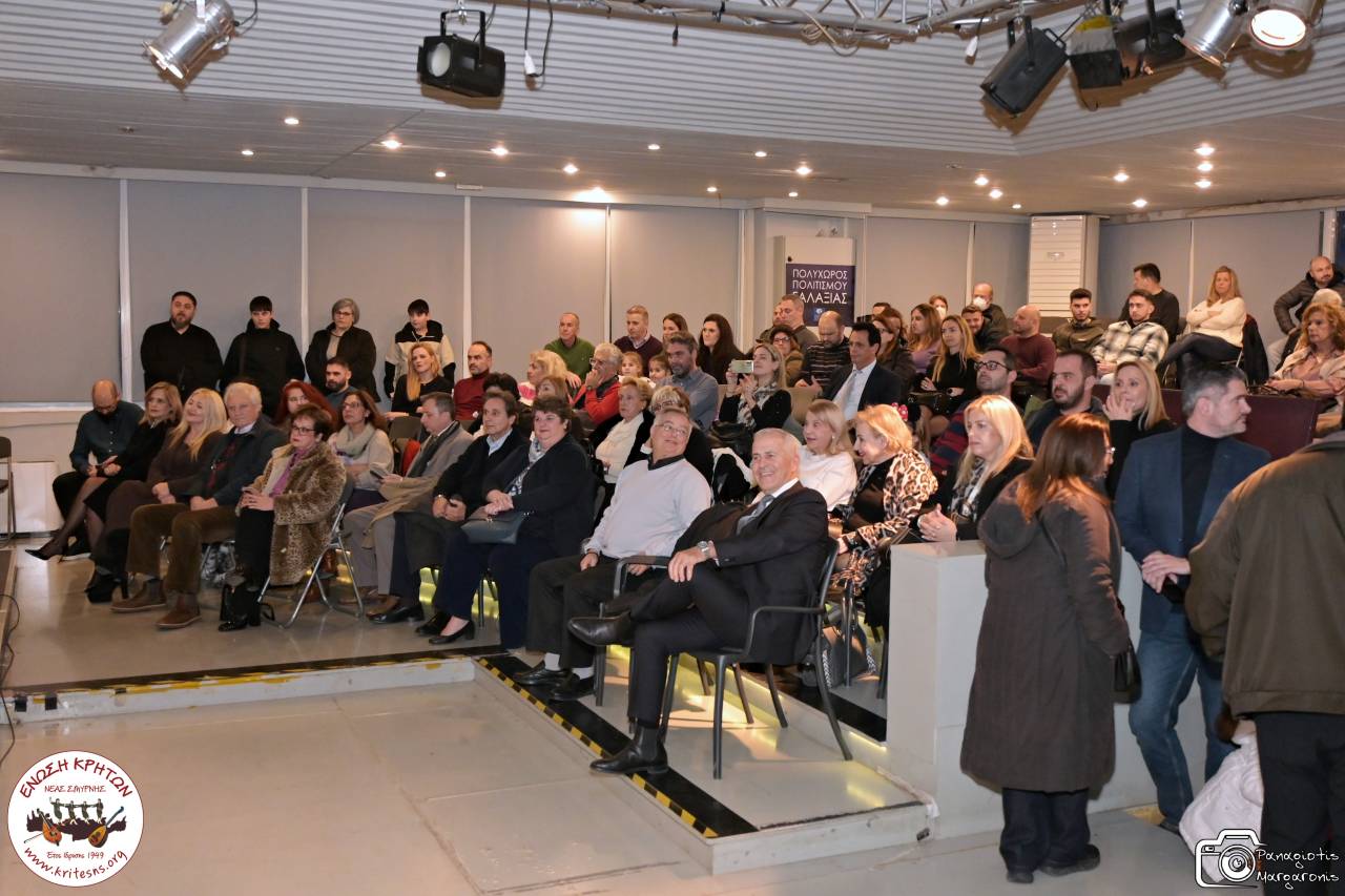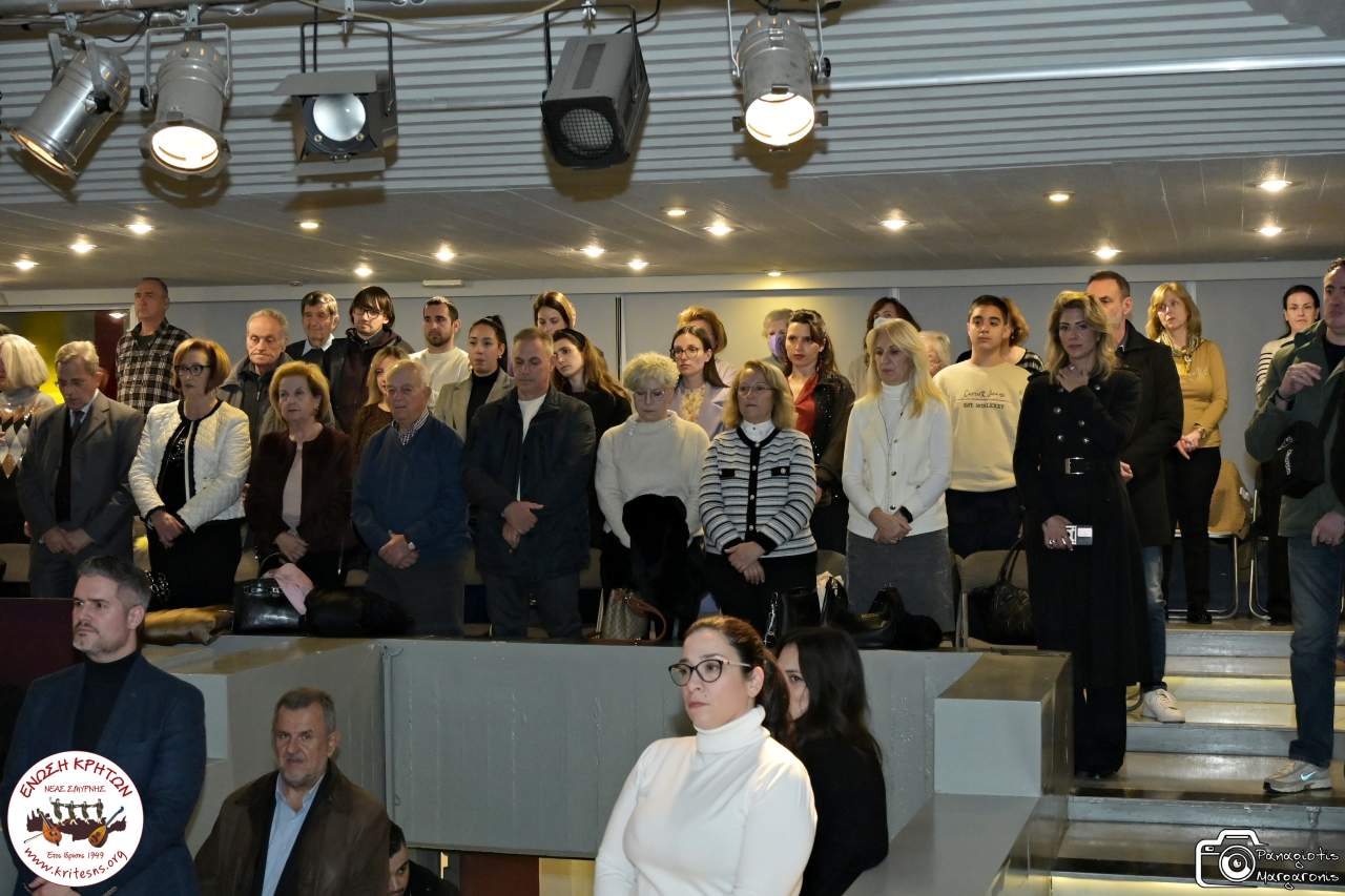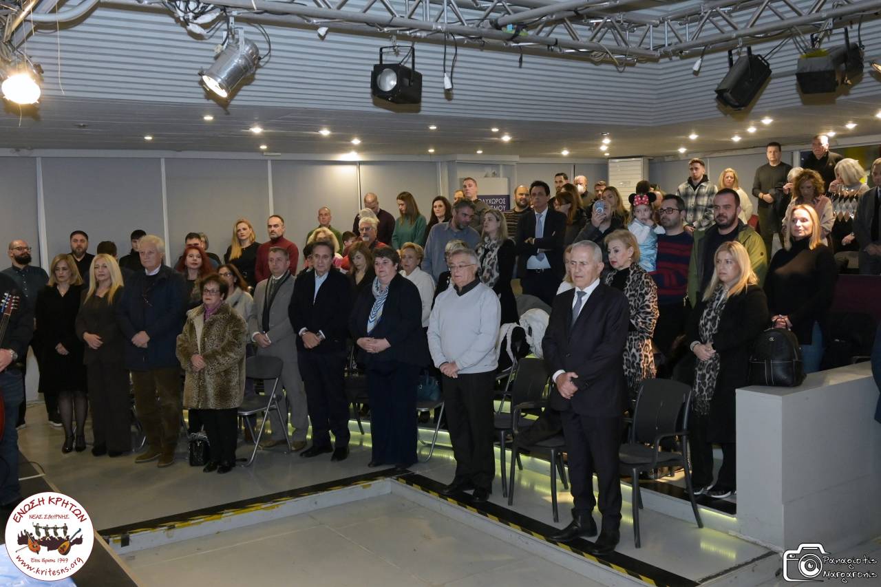 Η κατάμεστη αίθουσα, γεμάτη από φίλους και μέλη της Ένωσης, ενθουσιάστηκε με τους χορούς της παιδικής χορευτικής ομάδας, υπό τους ήχους του μουσικού σχήματος του δασκάλου της κρητικής λύρας της Ένωσης, Αντώνη Κεχαγιαδάκη, με τη συνοδεία των λαουτιέρηδων Αδαμάντιου Λαδουκάκη και Μανώλη Φετοκάκη.