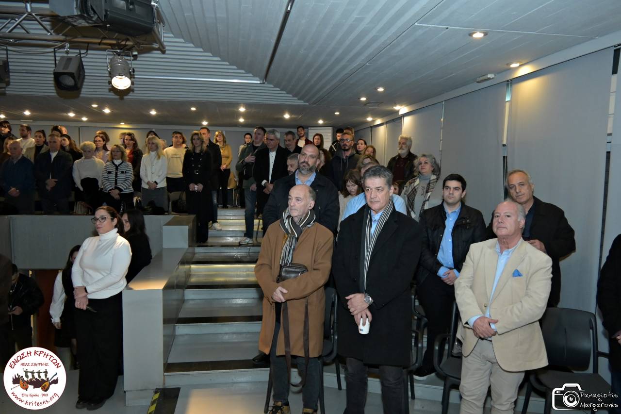 Ακολούθησε το καλωσόρισμα από τον Ταμία της Ένωσης, Μανώλη Ανδρουλάκη, και στη συνέχεια ο Πρόεδρος, Τάκης Πρασσάκης, ευχαρίστησε τον κόσμο για τη θερμή παρουσία του. Παράλληλα, αναφέρθηκε στο πλούσιο και ποικιλόμορφο πρόγραμμα εκδηλώσεων της Ένωσης για το 2025, υποσχόμενος ένα ακόμη πιο δραστήριο 2026, κλείνοντας με την όμορφη ευχητήρια μαντινάδα: